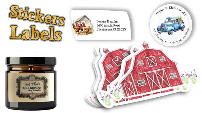 Click here to order labels.Upload your design and we will print your labels to order, satisfaction guaranteed! Our labels come in all shapes and sizes, in paper or weatherproof, clear, white and brown kraft. Check out our sister website Stella's Stickers for our label designs.