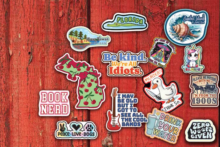Stickers are all around us. Whether in seaside souvenir stores or vintage shops downtown, commemorative stickers are a common sight. Delve into our range of amusing, endearing, and travel-centric stickers. Upload your own design here or explore our sister site Stella's Stickers for additional options.