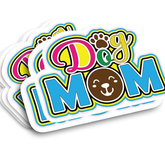 Take pride in being a dog mom with this laminated, vibrant vinyl sticker featuring the phrase "Dog Mom." It can adhere to any non-porous surface and is crafted from top-grade, durable vinyl for long-lasting use, even in inclement weather.